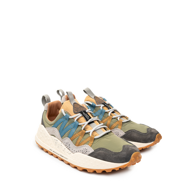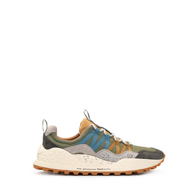 Suede and technical textile sneakers in brown and green tones from Flower Mountain. A round sneakers toe, lace-up closure. Pull loop at the heel co...