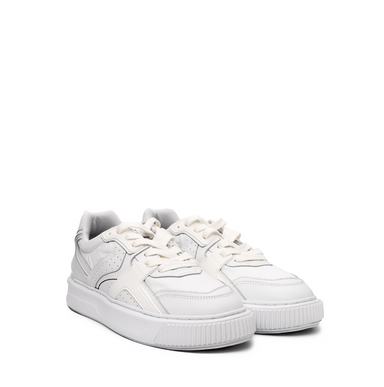 White leather sneakers from Ixos X. A round toe, lace-up closure. Logo embossed at the side. Leather lining. Rubber sole. Item Code: 96501 Material...