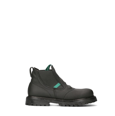 Polished leather ankle-high boots in black from Premiata. A round-toe, slip-on design with rubber gusset inserts. These leather boots are finished ...