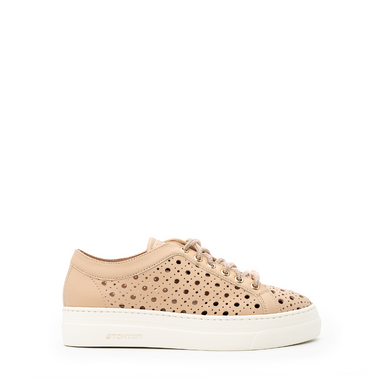 Perforated leather sneakers in nude from Stokton. Decorative embellishment. A round toe, lace-up closure. Leather lining. Rubber sole. Item Code: 8...