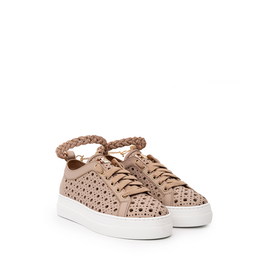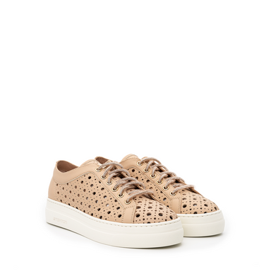 Perforated leather sneakers in new nude tones from Stokton. A round toe, lace-up closure. Decorative detail on the laces. Leather lining. Rubber so...