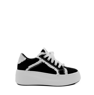Black cotton sneakers with fringes from Vic Matie. Transparent mesh with embroidery all over. Leather lining. A futuristic rubber platform with a s...