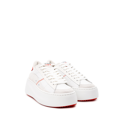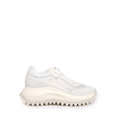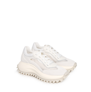Running style sneakers in nubuck, leather, and textile in white from Vic Matie. A round toe, lace-up closure. Logo-branded hyperbolized style light...