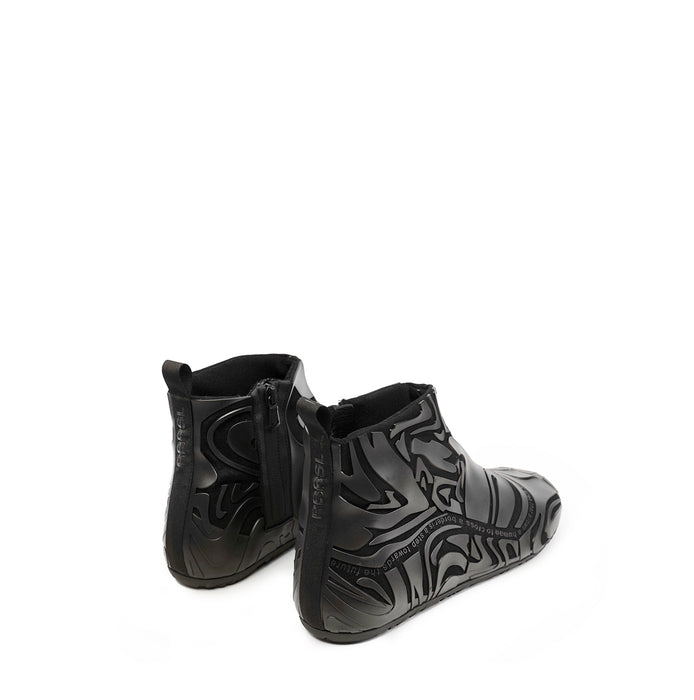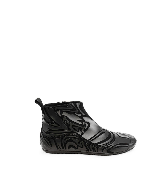 Unique sneakers from RBRSL. A round toe, zip closure at the inner side. A mix of technical textile and rubber at the upper. Leather inner sole.