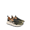 Leather and technical textile sneakers from Flower Mountain. A round sneakers toe, lace-up closure. All Flower Mountain shoes are leather-covered and feature extra natural cork insoles, treated with AGION, a natural mineral compound that prevents mildew formation and repels bacteria. It makes the Flower Mountain line shoes hygienic, very comfortable, and durable.