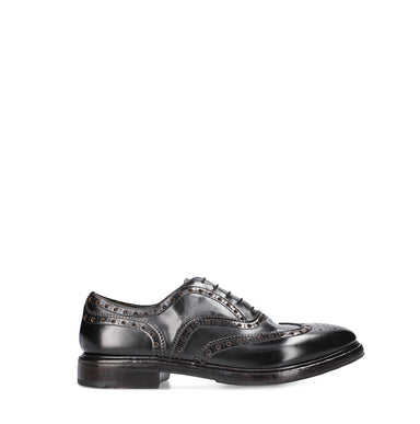 Perforated leather lace-up shoes in black from Vittorio Virgili. A round-toe, slip-on design, lace-up closure. Leather lining, leather/rubber sole....