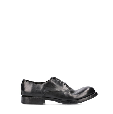 Leather lace-up shoes in black from Premiata. A round toe, lace-up closure, waxed cotton laces. Leather lining. Leather sole with the rubber heel. ...