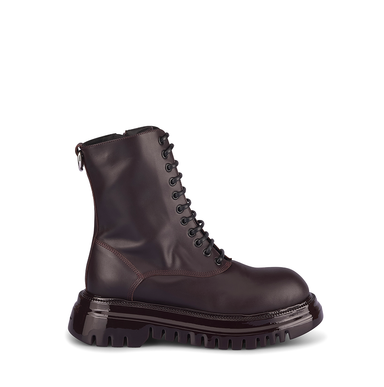 Dark bordeaux leather ankle boots from Mattia Capezzani. Round-toes, lace-up closure, zip closure on the inner side. Leather lining. Exaggerated pl...