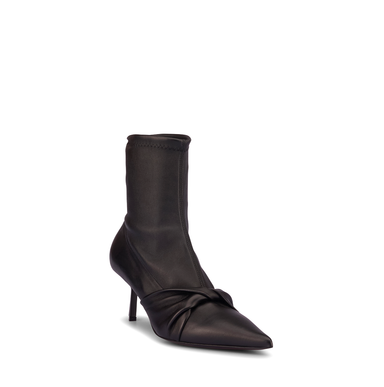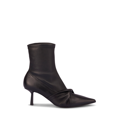 Black leather ankle boots from Mattia Capezzani. Pointed toe, with a soft, draped front detail. Stretch shaft for a snug fit. Leather lining, leath...