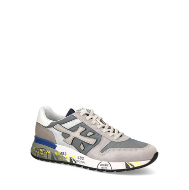 Leather sneakers in white with silver details from Premiata. A round toe, lace-up closure. A mix of leather, suede and mesh textile. Leather lining...