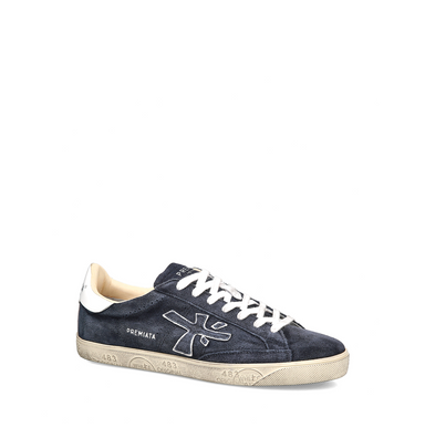 Washed suede sneakers in dark blue from Premiata. A round toe, lace-up closure. These shoes are finished with a unique washing technique, making ea...