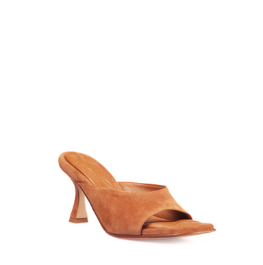 Leather sandals in caramel brown tone from Mara Bini. A round-toe, slip-on design, elasticized strap. Leather lining. Leather/rubber sole. Item Cod...