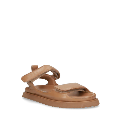Leather sandals in caramel brown tone from Mara Bini. A round-toe, slip-on design, elasticized strap. Leather lining. Leather/rubber sole. Item Cod...