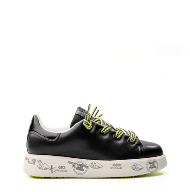 It fits small to size; take a size larger than usual. Black leather sneakers from Premiata embellished with crystals. Classic round toe and lace-up...