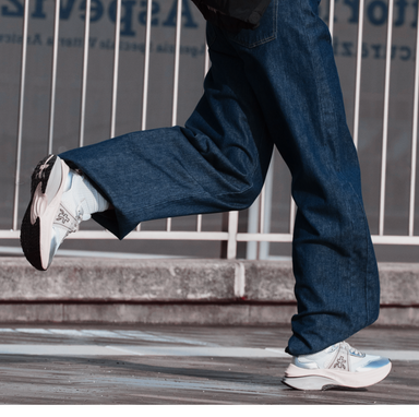 Woven textile and suede sneakers in white tone with silver details from Premiata. A round toe, lace-up closure. Rubber inserts. Logo print on the r...