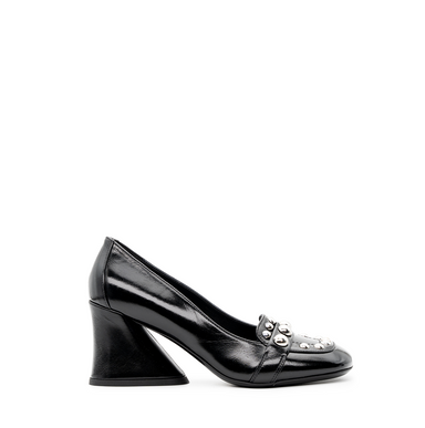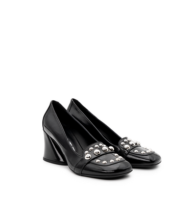 Soft leather pumps in black from Strategia. A round-curved toe, slip-on design. Metallic studs. Leather lining. Leather sole. Item Code: 5668 Mater...