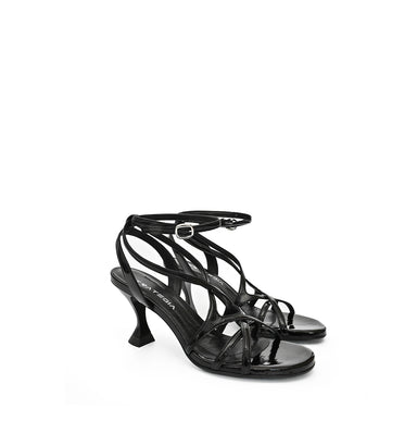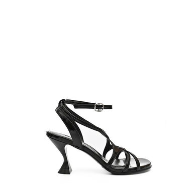 It fits large to size, so take a size smaller than usual. Shiny leather sandals in black from Strategia. A round-toe, slip-on design, and zip clos...