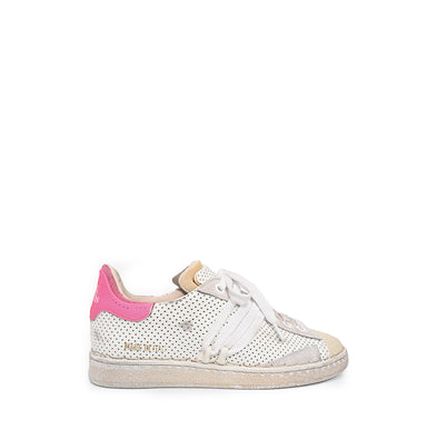 White sneakers from Premiata crafted from smooth leather. Featuring a lace-up fastening, side logo embroidery, and leather lining. Set on a contras...