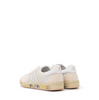 Leather and technical knitted textile sneakers in beige from Premiata. A round toe, lace-up closure. These leather shoes are finished with a unique washing technique, making each pair different and exclusive. Leather lining. Patented design model.