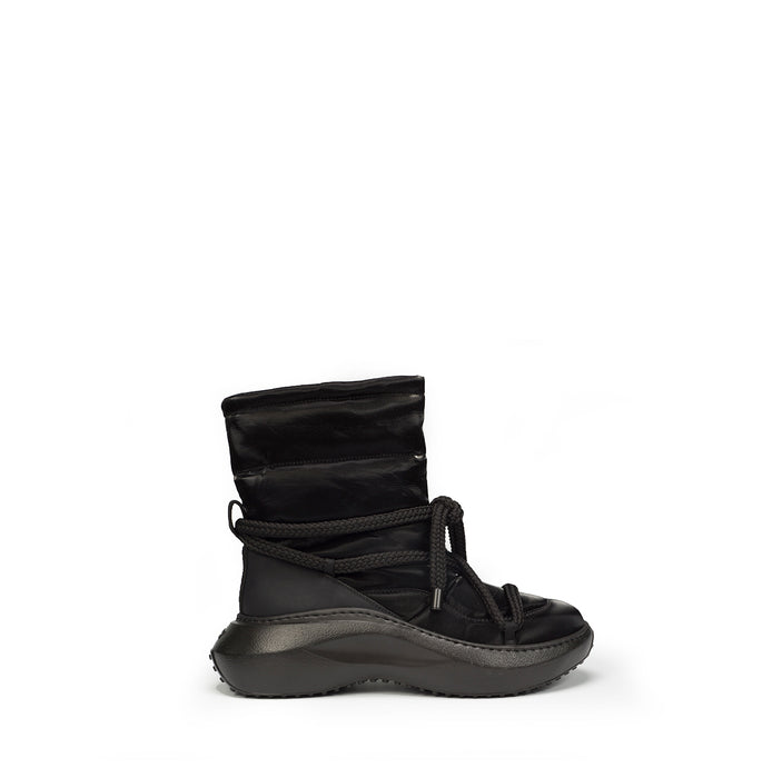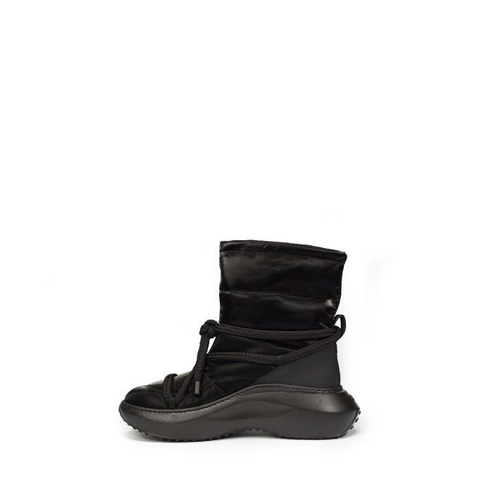 Rainproof ankle-high boots from Vic Matie. A round-toe, slip-on design. Made entirely from padded nylon with a nubuck leather counter. Oversized laces knotted at the front and adjustable via the metal tips. Logo-branded hyperbolized lightweight one-piece sole with rubber insert and non-slip TPU tread. Pure cotton-covered anatomic insole.