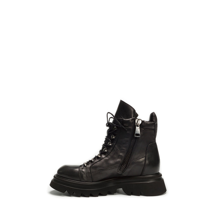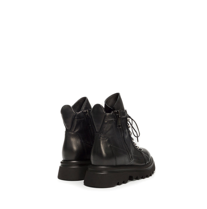 Extra soft leather ankle-high boots from Fruit. A round -toe, lace-up closure. Zip closures. Leather lining. Lightweight rubber sole.