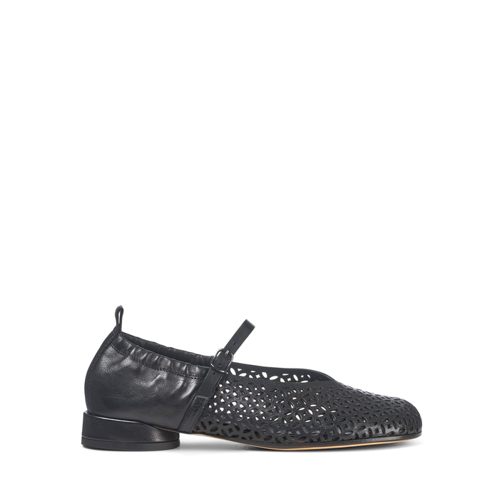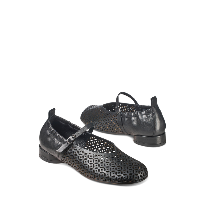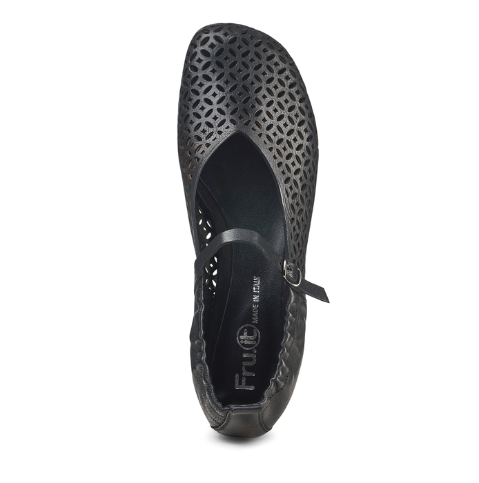 Perforated leather loafers in black tone from Fruit. A round-toe, slip-on design, buckle closure. Leather lining. Leather/rubber sole.
