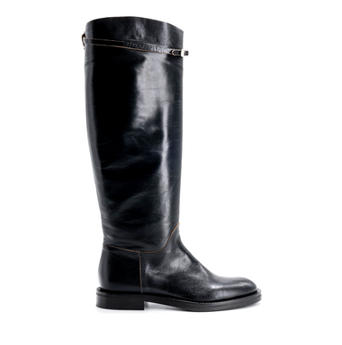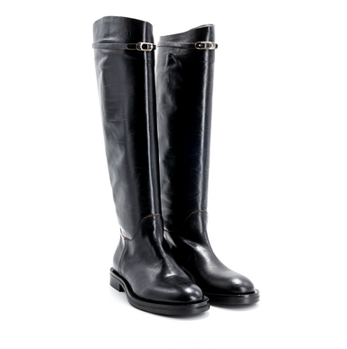 Šis modelis pamažintas, tad rekomenduojame rinktis puse dydžio didesnius nei avite įprastai. Juodi ilgaauliai, pagaminti iš lygios odos. Minimalist...