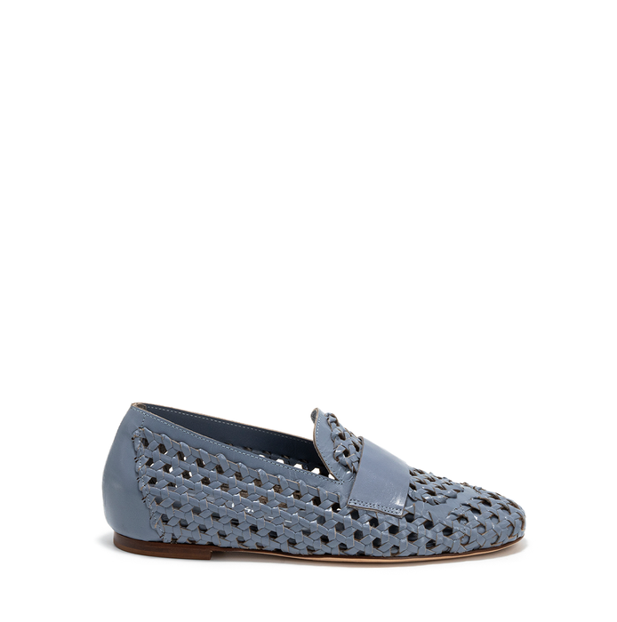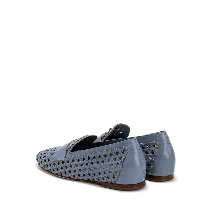 Viršus - pinta oda. Įsiaunami. Žydros spalvos.