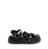 Viršus - oda. Įsiaunami. Užsegimas sagtele ir Velcro lipuku. Dekoruoti kniedėmis. Juodos spalvos.