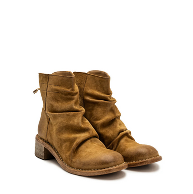 Prekės kodas - 444011 Viršus - minkšta oda, dažyta ir sendinta specialiu būdu. Įsiaunami. Rudos spalvos. Vidus - oda Padas - oda, guma. Kulno aukšt...
