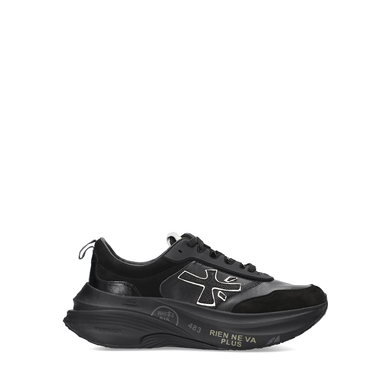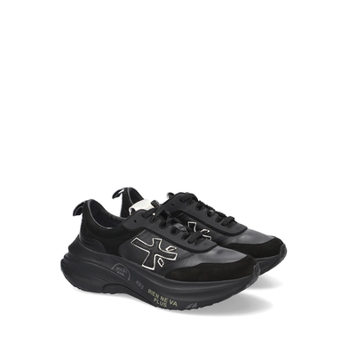 Juodi sportinio tipo bateliai. Verstos, tekstūrinės odų ir techninės tekstilės derinys. Su išsiuvinėtu logotipu šone, kontrastingais raišteliais ir...