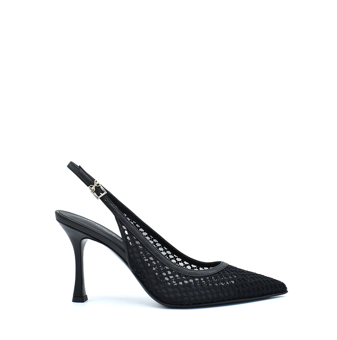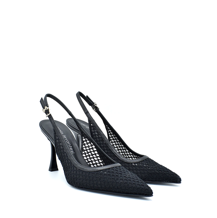 Viršus - tinklelinė tekstilė. Įsiaunami. Užsegimas sagtele. Juodos spalvos.