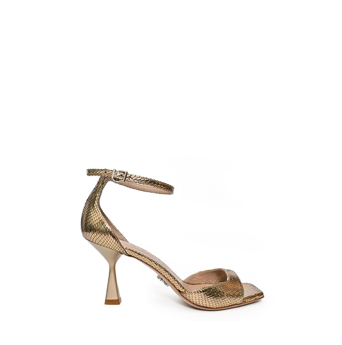 Viršus - specialiu būdu įspausta blizgi oda. Užsegimas sagtele.