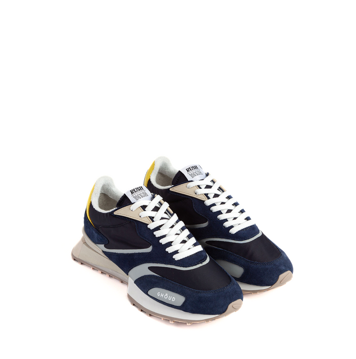 Viršus - sendinto efekto versta oda, techninis audinys. Suvarstomi. Mėlynos spalvos.