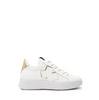 Viršus - oda. Suvarstomi. Baltos spalvos su aukso spalvos detale.