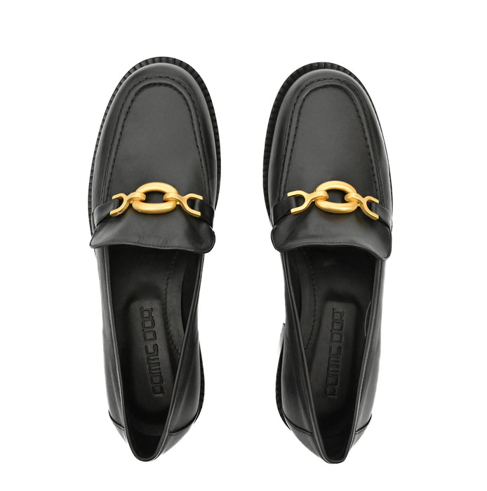 Viršus - lygi minkšta oda. Metalinė stilinga detalė.