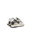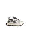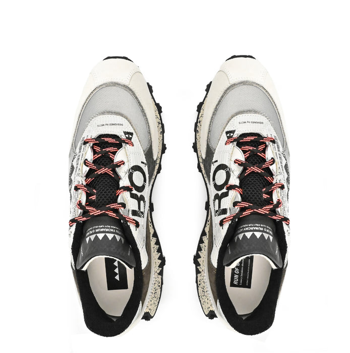 Viršus - sendinto efekto versta oda, PVC, kailiuko detalės, šviesą atspindintis techninis audinys, gumos detalės. Korėto porolono dalis ties liežuviu. Suvarstomi.