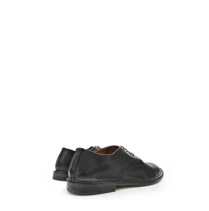 Viršus - lygi oda. Sendinta ir vaškuota specialiu būdu. Taip kiekviena batų pora tampa unikali. Suvarstomi.