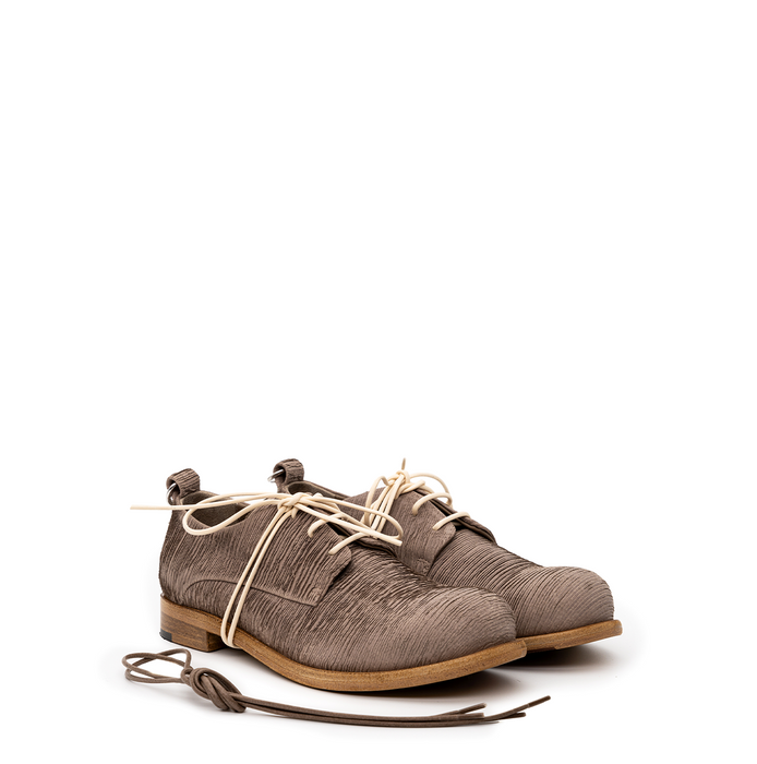 Viršus - oda, kuri dažyta specialiu būdu, taip suteikiant kiekvienai porai unikalumo. Suvarstomi. Papildomi rudos spalvos raišteliai viduje. Šviesiai rudos spalvos.