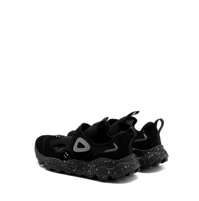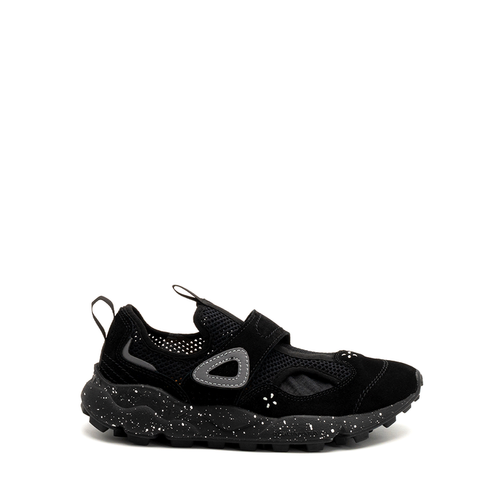 Viršus - versta oda, perforuota tekstilė. Užsegimas su „Velcro“ lipuku. Juodos spalvos.
