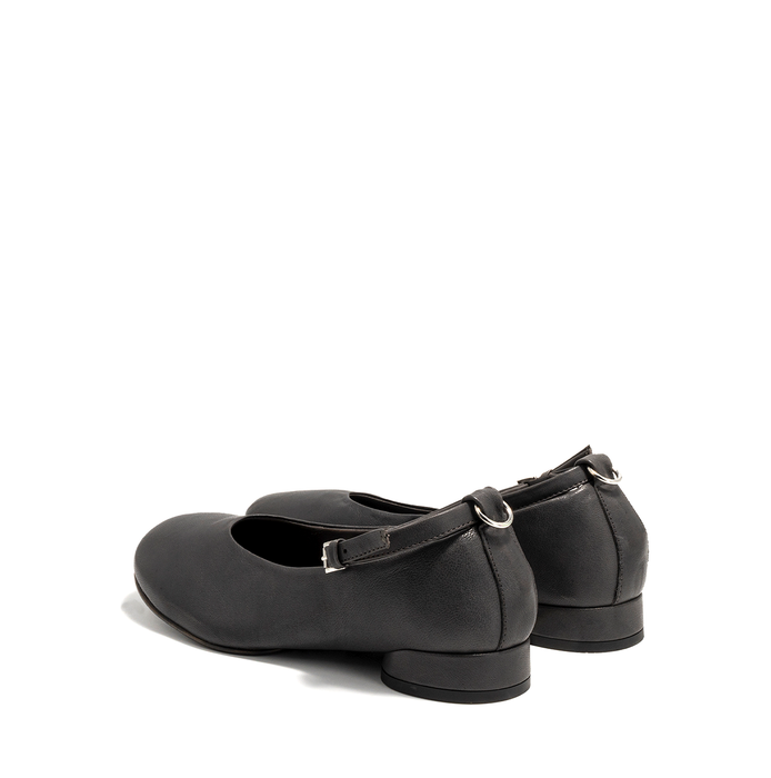 Viršus - oda, dažyta specialiu būdu, taip suteikiant kiekvienai porai unikalumo. Įsiaunami. Užsegimas sagtele. Tamsiai pilkos spalvos.