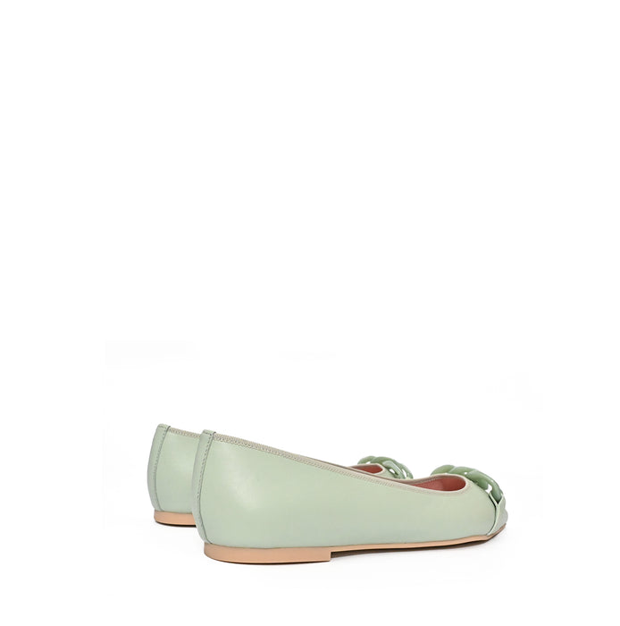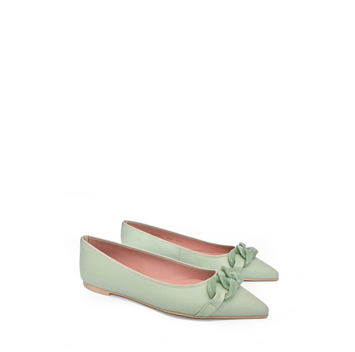 Viršus - minkšta lygi oda. Dekoratyvinė detalė iš plastiko.