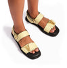 Viršus - minkšta lygi oda. Užsegimas „Velcro“ lipuku.