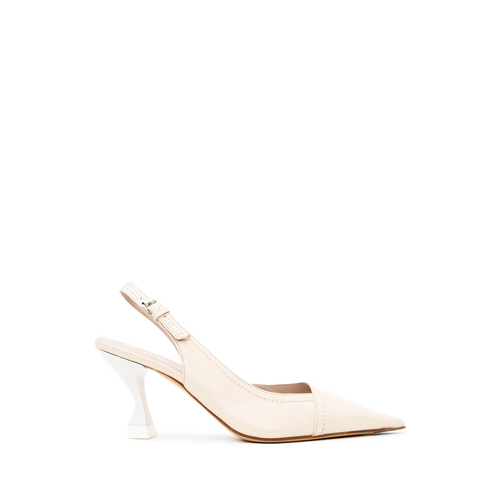 Viršus - oda. Įsiaunami. Užsegimas sagtele. Baltos spalvos.