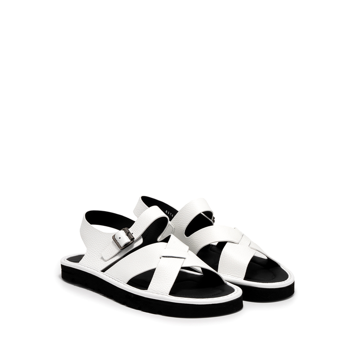 Viršus - tekstūrinė oda. Užsegimas sagtele. Baltos spalvos.