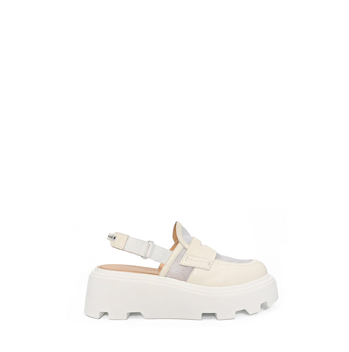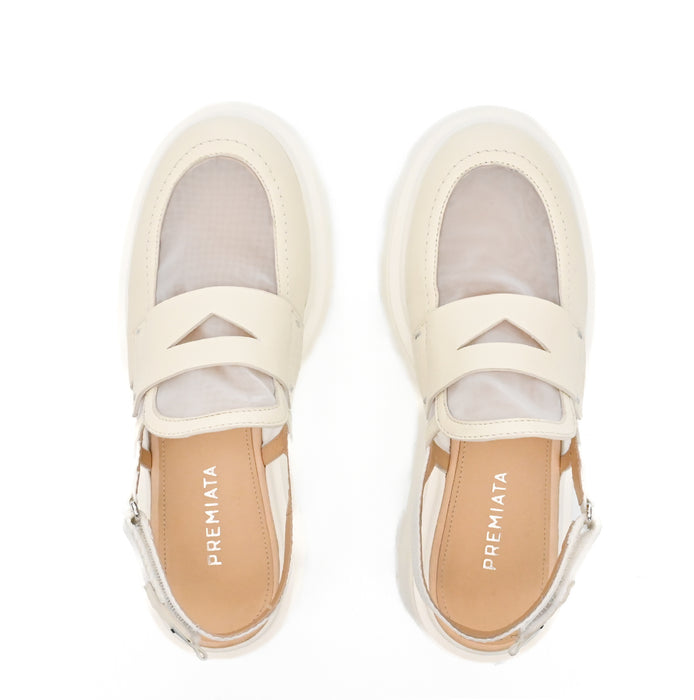 Viršus - oda ir permatomas techninis audinys. Užsegimas „Velcro“ lipukais.