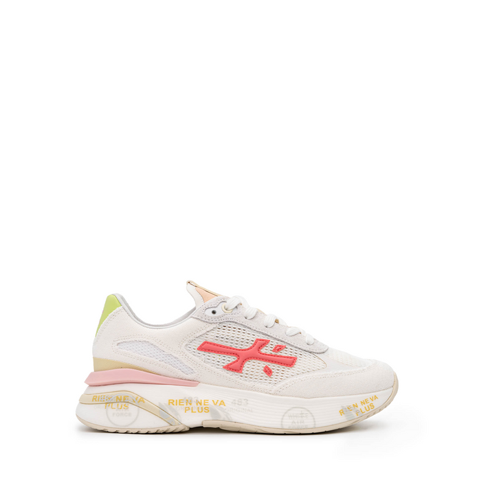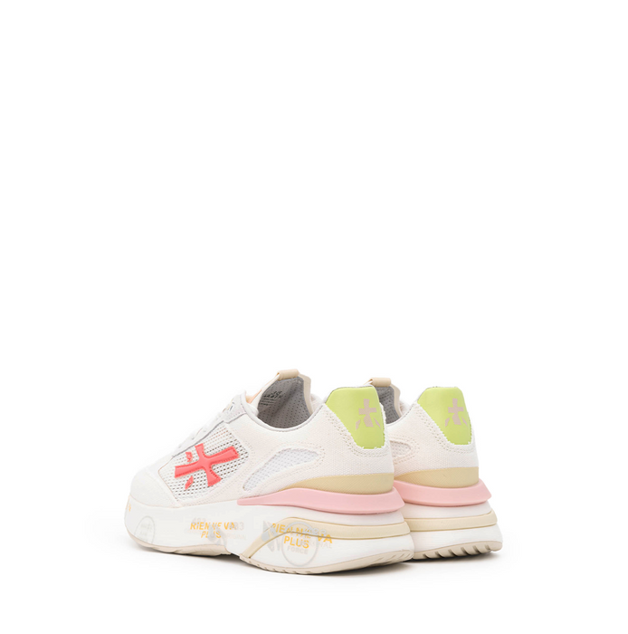Viršus - oda, techninė nerto efekto tekstilė. Suvarstomi. Baltos spalvos su rožinės spalvos detale.