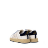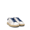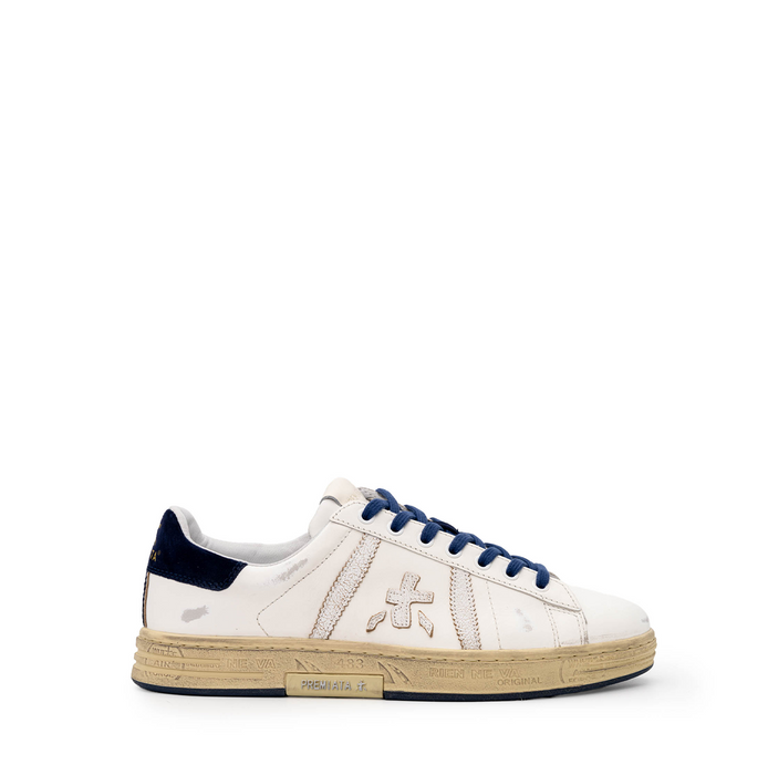 Viršus - oda, dažyta specialiu būdu, taip suteikiant kiekvienai porai unikalumo. Baltos spalvos su tamsiai mėlynos spalvos detale. Suvarstomi.