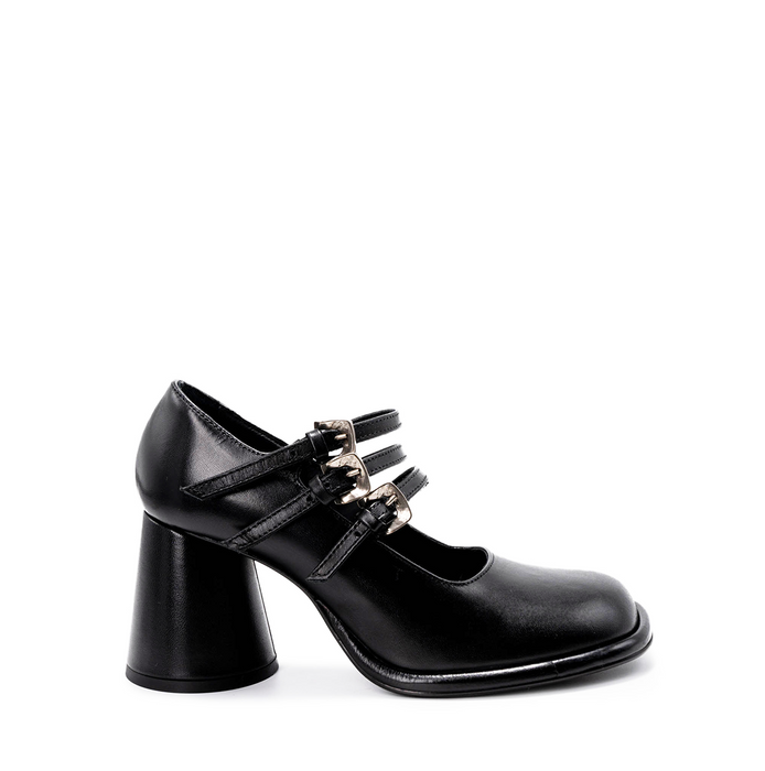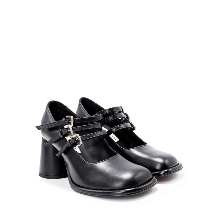 Viršus - oda. Įsiaunami. Užsegimas sagtelėmis. Juodos spalvos.