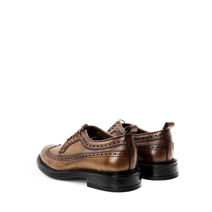 Viršus - oda, kuri dažyta specialiu būdu, taip suteikiant kiekvienai porai unikalumo. Suvarstomi. Rudos spalvos.